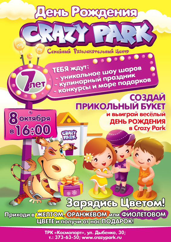 Пришедших в желтом, оранжевом или фиолетовом ждут подарки. Создай прикольный букет и выиграй ДЕНЬ РОЖДЕНИЯ в Crazy Parke