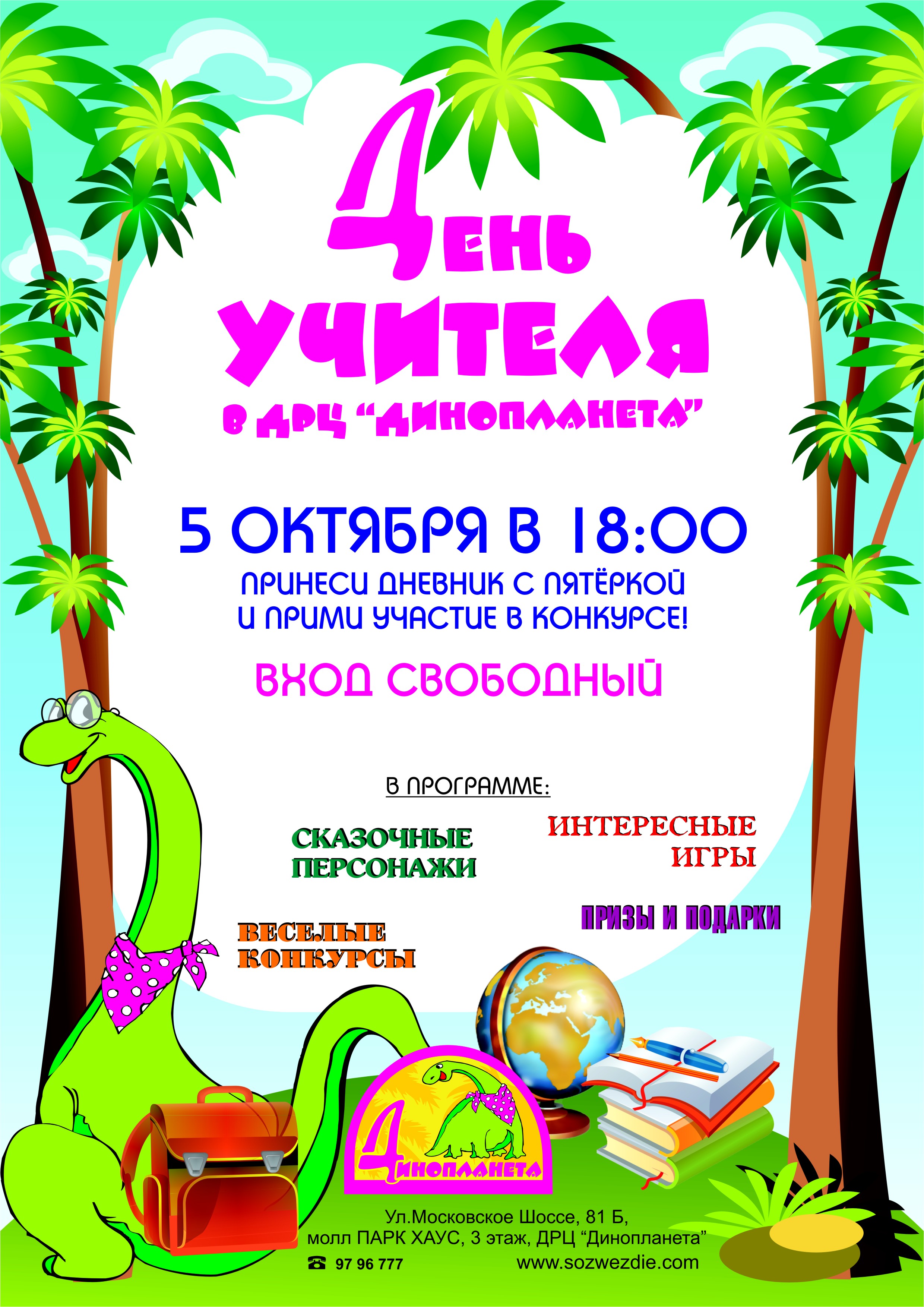 5 октября (СР) в 18:00: «День учителя!» Принеси дневник с пятеркой и прими участие в конкурсе! Вас ждет программа со сказочными героями, играми и призами!