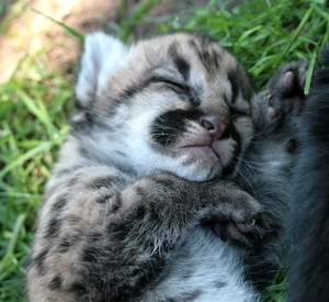У пары североамериканских пум – Пармы и Парамона – родились 4 очаровательных пятнистых котенка. Котята уже открыли глаза и с интересом изучают мир.