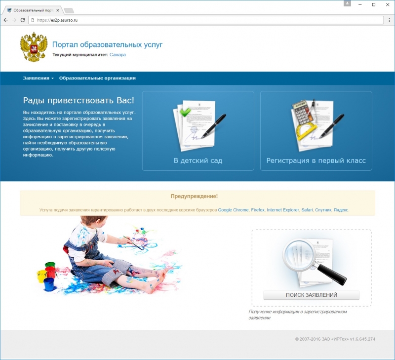 Правильный браузер. Убедитесь, что на компьютере или ноутбуке, с которого вы планируете подавать заявление, установлена актуальная версия браузера Интернет. Например, Google Chrome или Яндекс.Браузер. Из года в год у пользователей возникают проблемы с работоспособностью формы заявки прежде всего из-за того, что заявление подают из устаревших браузеров, которые и обычные интернет-сайты толком не показывают.