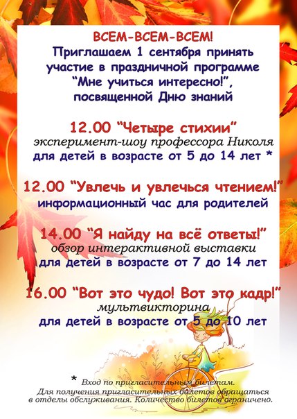 1 сентября: детская афиша Дня Знаний (2013 год)
