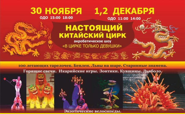Хотите показать ребенку Настоящий Китайский Цирк и поразить его воображение? Тогда примите участие в новом конкурсе концертно-театрального агентства "ТЕ-арт-Шоу": «Мой ребенок – звезда цирка». Главный приз – бесплатный билет на одну персону на Настоящий Китайский цирк. Представление состоится 30 ноября, 1 и 2 декабря в ОДО! Подробности об акробатическом шоу смотрите на сайте biletsamara.ru. Итак, правила конкурса: необходимо сфотографировать своего ребенка в любом цирковом образе (фокусник, дрессировщик, клоун, акробат и т.п.) и прислать  на  электронный адрес teartshow@mail.ru до 21 ноября. Победитель будет объявлен 23 ноября на  официальном сайте агентства и во всех социальных сетях. Ваш малыш запомнит поход в цирк надолго! Китайский цирк – один из самых древних в мире. Поэтому артисты соблюдают традиции 4000-летней давности. Каждый номер имеет символическое значение. Знаменитые китайские тарелочки, вращающиеся на длинных палочках блюдца, – это солнце. А артист – посредник между светилом и людьми. Программа, которую вы увидите, называется «Семнадцать цветущих роз». В ней участвуют знаменитые китайские девушки – высокопрофессиональные артистки. Интерес к китайскому цирку можно объяснить неповторимым и красочным восточным колоритом, а своеобразность искусства и сложность специфики оригинальных номеров.