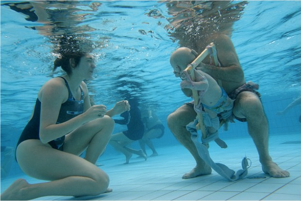 Водная среда становится для детей такой же родной, как и воздушная. Дети Лены Фокиной, последовательницы Чарковского, в 1.5-2 года могли спокойно доставать со дна моря звезды или каракатицы, играть с ними в море, как обычные дети играют с котятами и щенятами на земле.