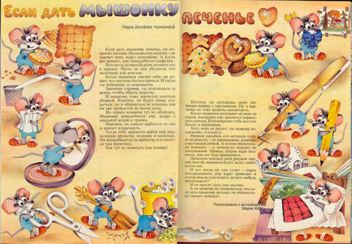 Если дать мышонку печенье, он попросит молока. Нальешь ему молока — он захочет пить через соломинку. А когда все выпьет, ему понадобится салфетка. Потом ты должен будешь поднять его к зеркалу. Пусть он сам убедится, что молочные усы исчезли.