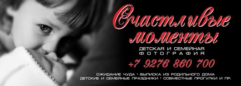 НовостиДетство - счастливая пора! Мы поможем Вам запечатлеть все СЧАСТЛИВЫЕ МОМЕНТЫ Вашего малыша в кругу семьи и друзей! Сохраните для своего малыша радость детства... Создайте маленькую историю своей семьи от ожидания чуда до его выпускного бала :-)
