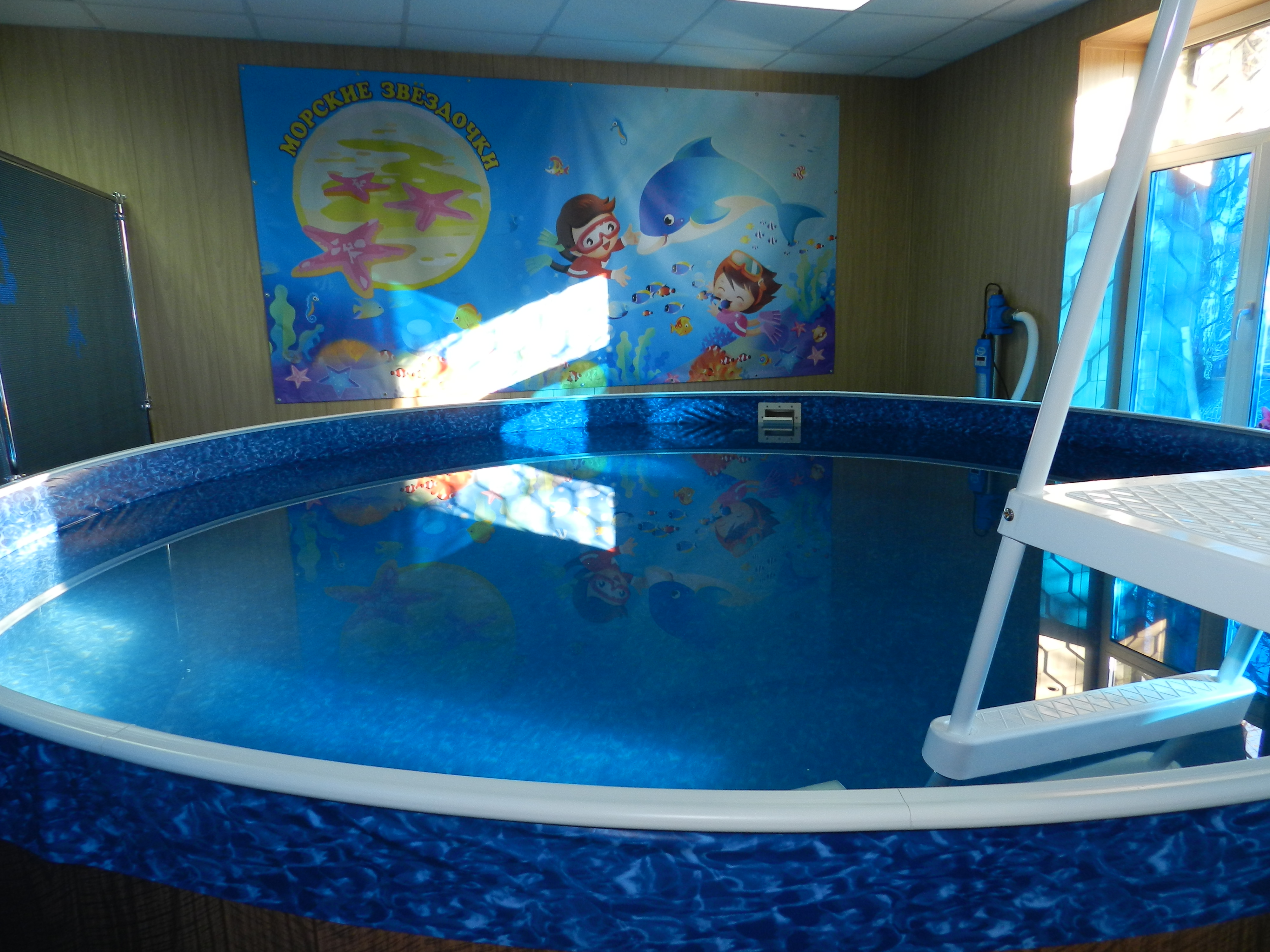 Занятия направлены на оздоровление и обучение детей плаванию. Занятия проводятся в бассейне диаметром 3,6 м, глубиной 1 м. Многоуровневая система очистки (фильтрация, уф-обеззараживание, озонирование). Для грудчиков вода 32-340С, для детей постарше 30-320С.