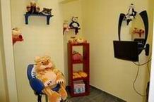 Описание: 2 зала - взрослый и детский. Детей встречает живой уголок с птицами амадинами, а еще персонал салона угощает юных посетителей детским чаем и дарит подарки. Во время процедуры детишки могут смотреть мультфильмы, играть, рисовать. Во время обслуживания взрослых дети играют в детской комнате с администратором.