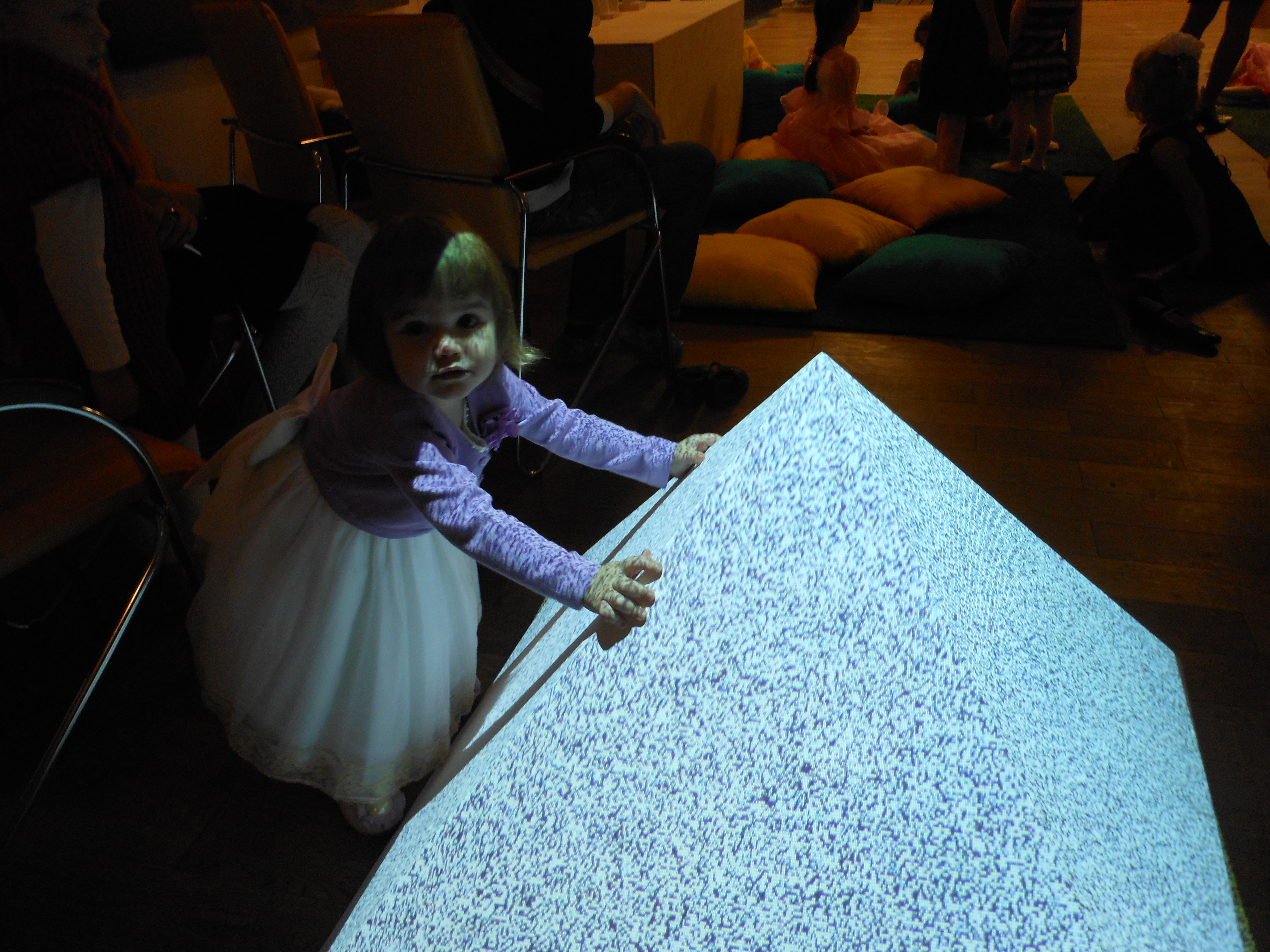 Мы уже приглашали всех желающих поучаствовать в интерактивной, эстрадно-театрализованной программе для детей и их родителей в рамках творческой лаборатории «Театральная мастерская на подушках». Мастерская такого нового и необычного формата будет работать и дальше, следите за анонсами на нашем сайте - у каждой новой программы будет своя тема и свой детский дресс-код. А сегодня наш постоянный автор Кэти Фли и ее дочка делятся своими впечатлениями от прошедшего мероприятия - 28 сентября в галерее «Новое пространство» юные посетители стали участниками настоящего костюмированного бала: В прошлую пятницу мы с двухлетней дочкой посетили костюмированный бал в рамках проекта «Творческая мастерская на подушках». Хочу поделиться впечатлениями от этого интересного и необычного мероприятия. Необычного по своему формату – детям предлагалось расположиться прямо на полу, точнее на подушках, раскиданных на ковриках. Всё это происходило в галерее «Новое пространство» на базе Самарской областной универсальной научной библиотеки. Уже при входе в галерею маленьких посетителей завораживала оригинальная инсталляция – пирамиды с постоянно меняющейся подсветкой проектора, которые можно было потрогать.