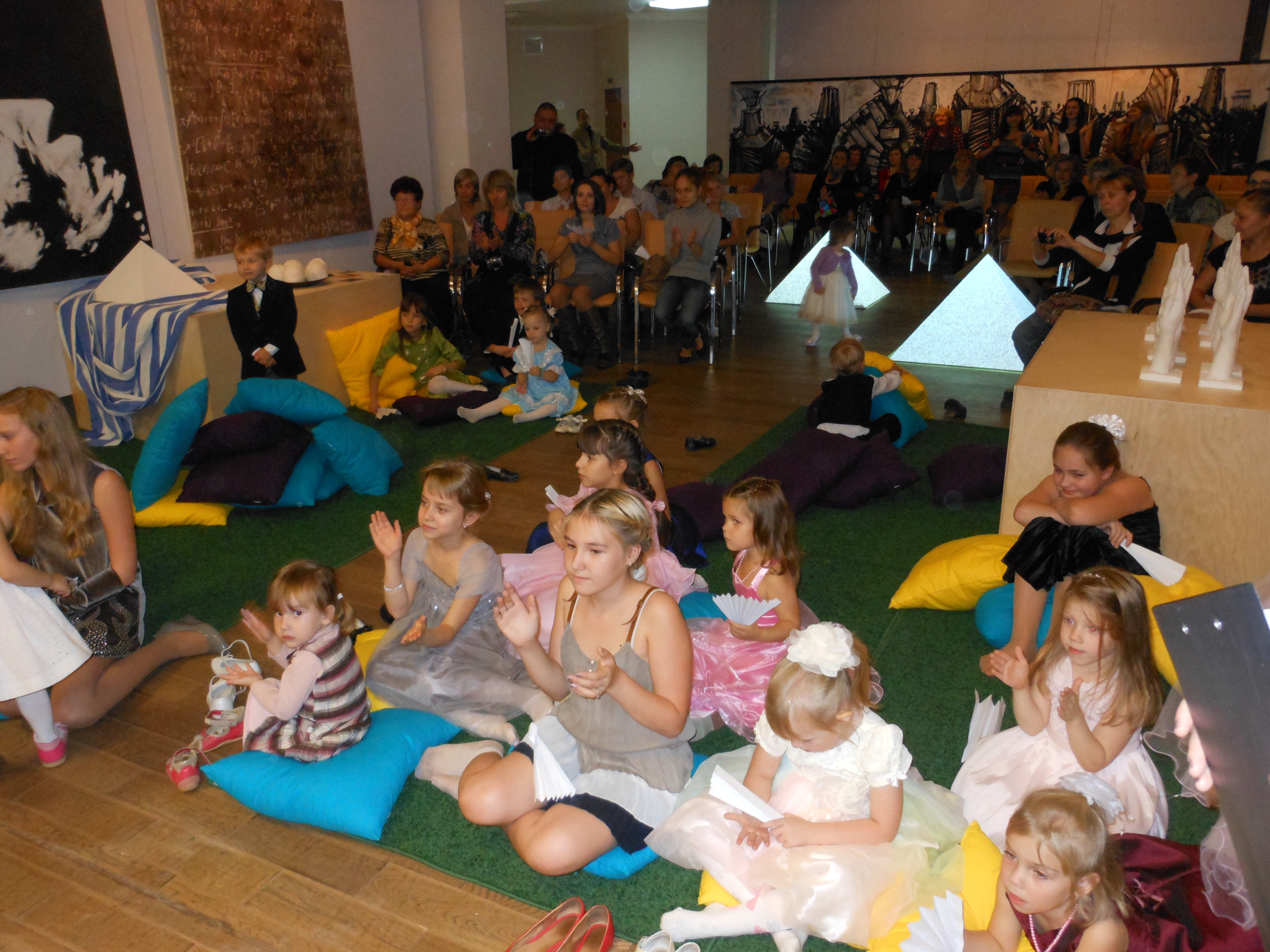 Людей было не так много, хотя вход был свободный. На мой взгляд, оптимальное количество - никто не толкался, было достаточно свободного пространства. Пришли в основном дошкольники с мамами и первым делом дали себе волю в игровой битве подушками. Далее, по ходу программы, сменяли друг друга танцевальные и вокальные номера. Был в мероприятии и познавательный момент – ведущая рассказала об этикете балов, предложила вместе вспомнить все известные танцы. Не обошлось и без мастер-класса – каждый маленький участник сделал себе веер.