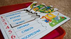 Пожалуй, самая многочисленная группа. Множество различных головоломок от самых простых – сортировок по размеру, до сложных головоломок для школьников. Сами пазлы различаются по качеству исполнения на эконом-вариант, стандарт и элит. В экономном варианте фанера тонкая, сами детали тоже потоньше и покрыты не ламинированной цветной бумагой. Элементы могут быть не отделены друг от друга полностью и после разделения требуется ручная обработка краев наждачной шкуркой. Серии элит и стандарт более качественные по исполнению, высота деталек и, соответственно, глубина гнёзд под них, примерно5 мм. В целом – дети с удовольствием их собирают, хорошо развивается мелкая моторика, воображение. Есть набор для изучения дней недели – справа нужно собрать дерево, а слева – в соответствии с пазами – названия дней недели, нумерация расставляется произвольно, т.е. ребенок может поставить номер 1 и вверху, и внизу. В наборах – собери квадрат - задания можно давать самые разные: - собрать квадраты по цветовым признакам - собрать картинку на столе из всех элементов - собрать квадраты из перевернутых деталей, не видя их цвета и т.д. Также есть много пазлов из серии "собери картинку".