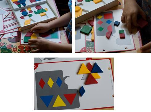 Ценовой диапазон: 800 – 3000 руб. Производятся: в Германии К конце обзора хочется остановиться еще на одной игре, у которой есть очень интересное решение мозаики для детей 3-10 лет. К сожалению, эта игра не продается в России, но в связи со всеобщей глобализацией, думаем, для заинтересованных лиц не представится тяжелым найти её за границей – это игра Mighty Mind. Здесь нужно, согласно заданиям, выкладывать рисунок из определенного набора деталей. Игра очень популярна у детей в Америке и Европе, давно признана родителями и педагогами. Есть лёгкий вариант игры для детей маленьких, и есть вариант для детей постарше – уже школьного возраста. Великолепно развивает пространственное мышление, даёт детям понятия об основных геометрических фигурах, при чем не просто так, а в применении к конкретной ситуации. Дети сразу видят, что получается, если, например, два ромба положить вместе, или как построить домик из квадрата и треугольника. Есть вариант с деревянными деталями, и второй – с пластмассовыми.