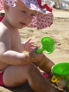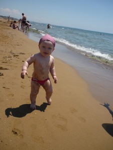 9. Позвольте малышу взаимодействовать с природой. Пусть он сидит на песке. Пусть подбирает с пола камни, срывает растения. Пусть нюхает все и трогает. Пусть изучает, не останавливайте. Ребенку страшно интересно узнать, почувствовать, услышать, ощутить – не лишайте его этого. Это вы все вокруг уже знаете, а он – видит впервые. Так пусть получает опыт. Нет ничего страшного в том, если ребенок съест немного песка с чистого пляжа. Моя дочка ела его тоннами, выдавая потом эти тонны в горшок, а сейчас уже к песку равнодушна. Она изучила и поняла, что такое песок, и теперь с ним просто играет. Пусть ребенок валяется голышом, пусть бегает босиком, пусть заходит в воду и проводит там сколько угодно времени. Ему действительно от этого ничего, кроме радости и опыта, не будет. И не стойте над ним сычом, дайте возможность самому освоиться. Во время нашего отдыха Майя вовсю плескалась в реке на пляже. Пляж каменистый, камней много, но не одни камни, много и песка. Когда Майя побежала в воду, какая-то бабушка осуждающе посмотрела в мою сторону, встала и начала убирать камни рядом с бегающей туда-сюда Майей, приговаривая «А то упадешь». Не упадет, - ответила я. И она действительно не упала ни разу за два с лишним часа, которые мы там провели. Потому что я никогда до этого не убирала камни из-под ее ног, она умеет их обходить, широко расставив ножки. А даже если бы она упала, она села бы на попу – она умеет падать небольно, я никогда ее не ловила. И мне не нужно бегать за ней по пляжу. Не поверите: я лежу и загораю, а дочка одна плещется у воды. Она не заходит одна в воду дальше, чем по колено – уж не знаю почему, я никогда ей не запрещала. Я просто лежу и смотрю, как она играет. А иногда она подбегает ко мне, чтобы пососать грудь, или просто над чем-нибудь похихикать.