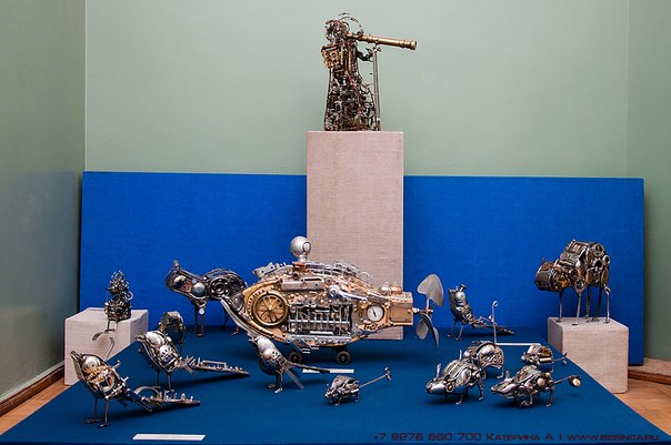 В сентябрьском анонсе художественных мероприятий мы рассказывали об одной из выставок в Детской Картинной галерее - выставке художника Юрия Ивукина «Другой». Представляем фотоотчет - скульптура (металл, камень, дерево, пенобетон), арт-объекты и многое другое, представляющее сложный и яркий образный мир художника. Выставку посетила семейный фотограф Катерина Александрова. Все фотографии Катерины про детей и для детей, и эта выставка не исключение. Маленькие посетители оценят и забавных деревянных Буратино, и симпатичных птиц, и животных из разнообразных металлических деталей, среди которых часовые шестеренки, запчасти швейных машин и других механизмов, велосипедные и автомобильные цепи, лезвия старых коньков и многое другое. Все экспонаты своеобразны и самобытны. У художника Юрия Ивукина нет профессионального художественного образования, зато есть жадный интерес к эксперименту как к способу постижения мира. Он - художник самарского цирка, что расширяет его художественные интересы и возможности. На время этой выставки Детская картинная галерея, безусловно, становится музеем современного искусства. Выставка работает в течение сентября по адресу ул. Куйбышева 139, тел. 332-43-98, 332-20-67