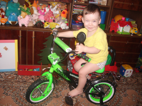 Только что фотографировались на новом велосипеде! Сегодня у Владика День рождения! Проснулся, а тут подарочек и сразу же давай опробовать!:)