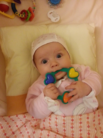 Ксюшка со своей первой и самой любимой погремушкой... Страстной Ксюшиной любви погремушка не выдержала и сломалась, когда у дочи стали лезть зубки.