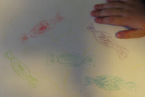 Как только узнали о конкурсе, сразу решили поучаствовать. Я показала пример, и Миша сам в итоге нарисовал все конфетки. Может, вышло не идеально, но, мне думается, вполне узнаваемо!