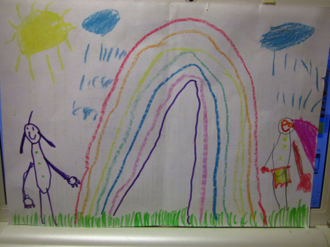 Летом даже дождик не может испортить настроение. Ведь после дождика всегда выглядывает солнышко и можно увидеть красавицу-радугу! И даже попытаться ее потрогать ))