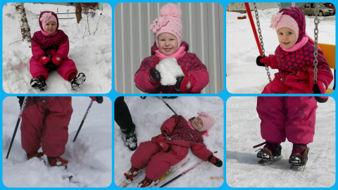 Любите ли вы зиму так, как люблю ее Я (вернее вся наша семья)? Наверно вы уже поняли насколько сильно любит зиму наша семья - папа Виталий, мама Марина, дочки Катюшка-котенок (3 года) и Машулька-мышонок (1 год) ! Наша старшая дочка Катюшка очень любит снежные забавы (снежки, снежные крепости, катание на санках, коньках, лыжах). Больше всего ей нравится кататься на коньках. А вот коньки у нее были еще мамины (помните как раньше железные на двух полозьях! - достали из бабушкиного волшебного сундучка). Теперь Катюша написала письмо Деду Морозу и ждет настоящие фигурные коньки!
