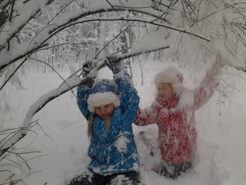 • Алина и Ульяна Красновы резвятся в снежном лесу