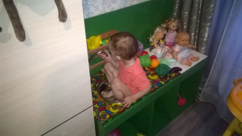 Муж сделал дочке кухню, а она в ней моется и кукол моет))))