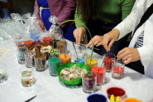 Для декора можно использовать цветной песок, ракушки, камешки, кристаллы, фигурки из картона и много другое. Каждый из участников сможет проявить фантазию и создать свою неповторимую свечку.