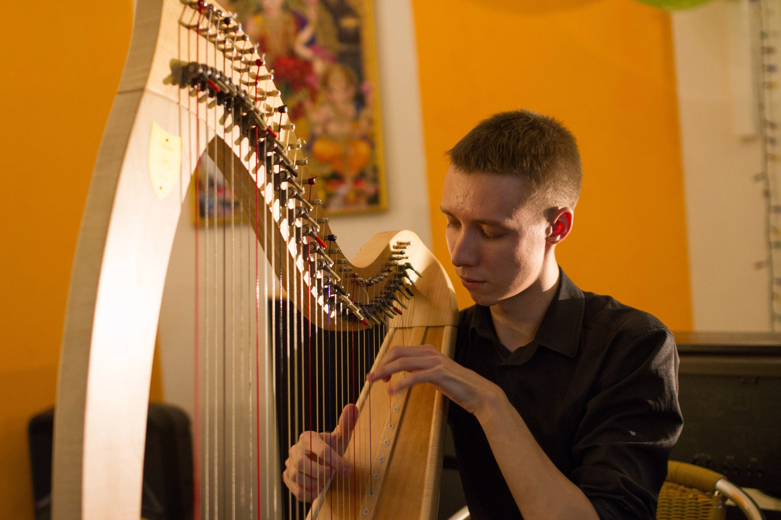 Гостей ждут исцеляющие звуки арфы и язычкового аналога ханга — рав васта — в исполнении Алексея Зулина.