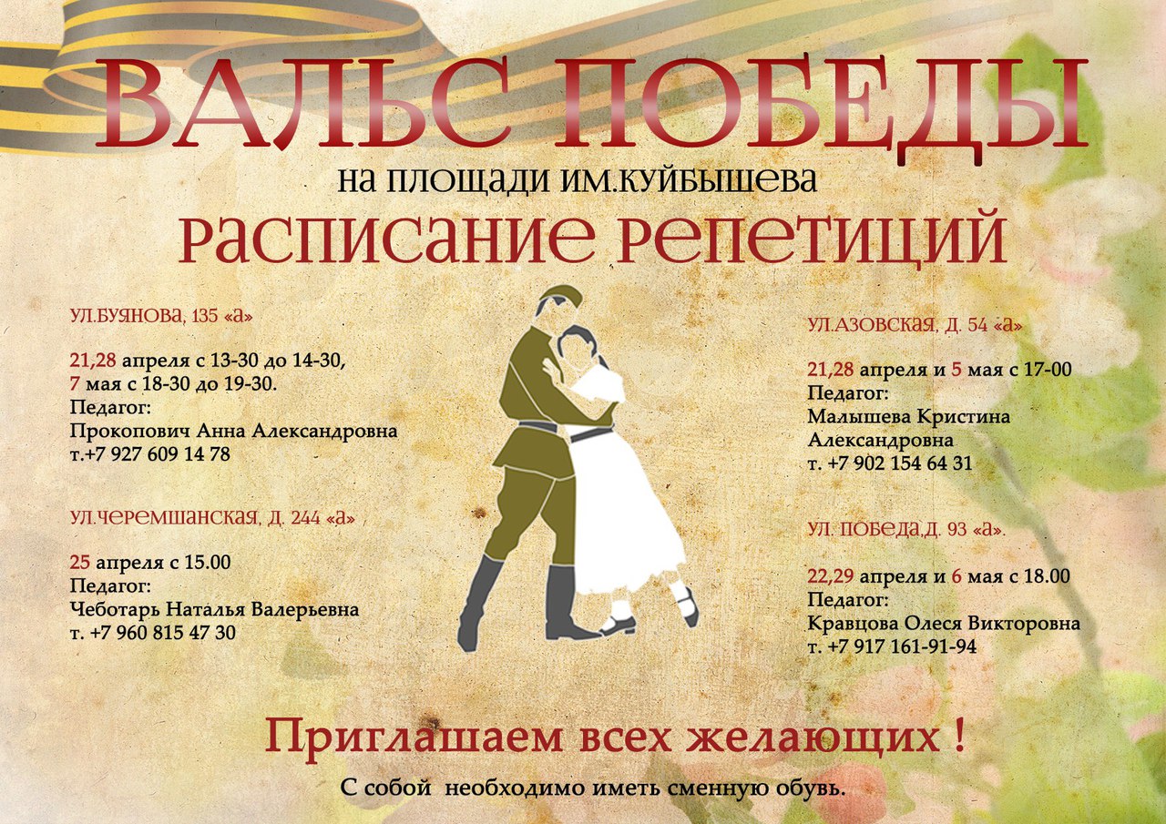 9 мая на площади Куйбышева второй раз состоится всероссийская акция «Вальс Победы» для самарцев от 6 лет и взрослых.