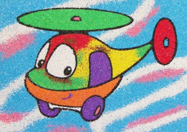 Цветной песок позволяет создавать удивительно красивые картины и придает им определенный объем.