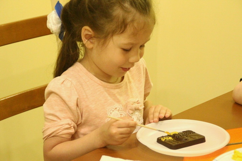 В ходе нее ребята поучаствуют в игровом процессе изготовления шоколада, узнают, из чего и как его делают, попробуют разные сорта шоколада и распишут шоколадную открытку.
