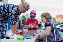 - Создание арт-объекта «Счастливая семья» с ростовыми буквами, красками и широкими кистями.