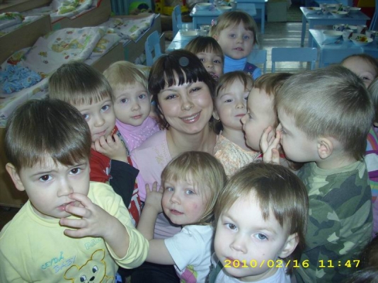 Количество педагогов, воспитателей и нянь, работающих с группой детей: с каждой группой детей постоянно работают два воспитателя и один помощник воспитателя