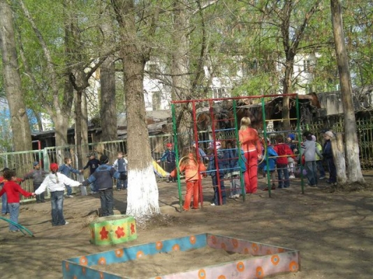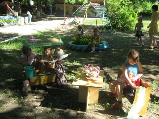 Где расположена игровая площадка и ее примерная площадь: на территории детского сада имеются групповые площадки с теневыми навесами, песочницами, малыми игровыми формами