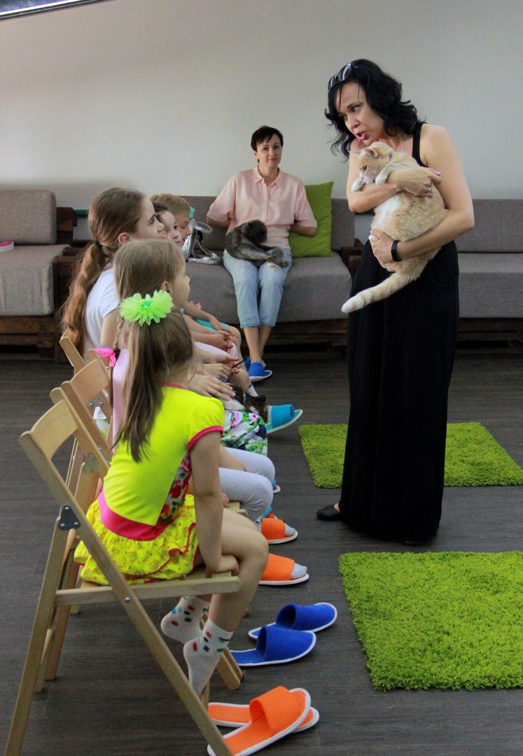 На занятии дети узнают о том, как правильно общаться с кошками и как подготовится к появлению кошки в доме. Также мы постараемся разрушить сложившиеся стереотипы о наших пушистых друзьях. Занятие длится около 1 часа, и полчаса занимает экскурсия по котейне.
