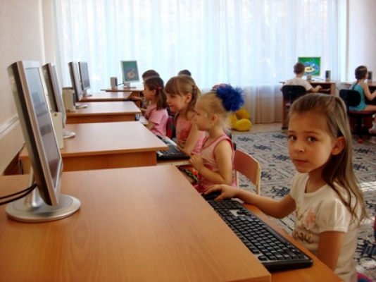 Есть компьютерный класс, где занимаются дети старших и подготовительных групп, время занятий: 1 раз в неделю по 15 минут, в кружке «Компьютерная азбука».