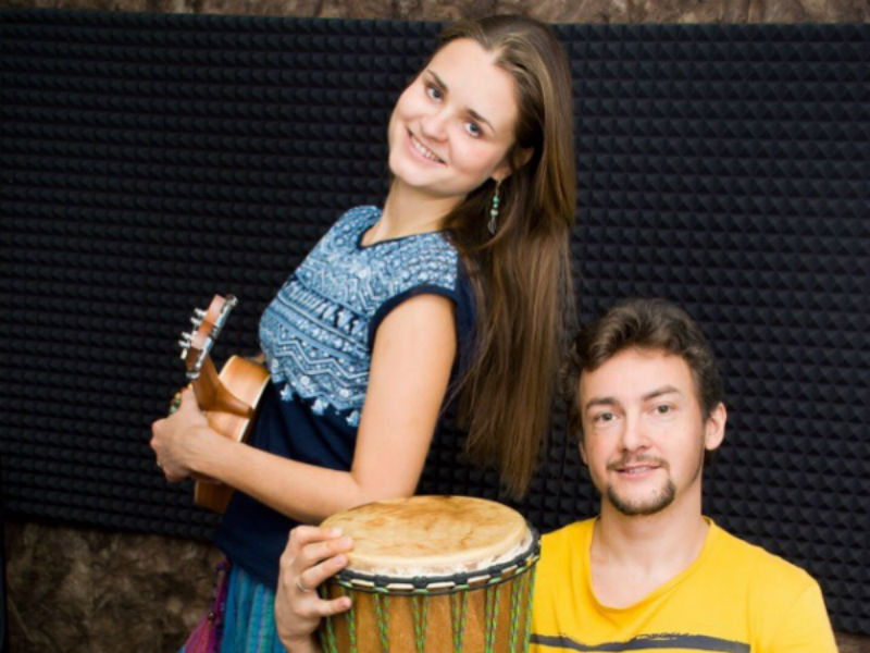 На концерте вы сможете услышать добрые песни в сопровождении укулеле, глюкофона, барабанов джембе и гитары в исполнении Александра и Ирины Плотниковых.