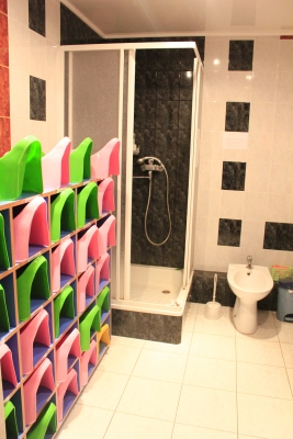 На какие блоки разбито помещение: холл, 2 игровых-учебных, 3 спальни, кабинет врача, столовая, 2 . узла для детей, сан. узел для взрослых, душевая
