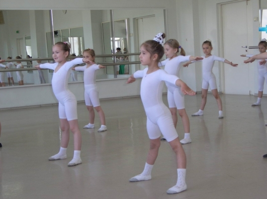 Что нужно для занятий: Девочки: белый купальник (без юбки), белые велосипедки, белые носочки, белые балетки. Мальчики: белая футболки, черные велосипедки, белые носки, белые балетки