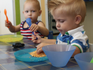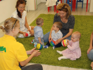 Каждый ребенок занимается вместе с мамой или другим взрослым человеком (папой, няней, бабушкой).