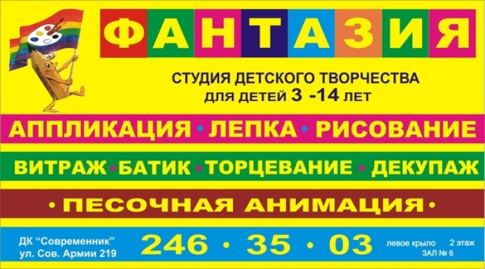 Студия детского творчества «Фантазия» проводит обучение детей по следующим направлениям: