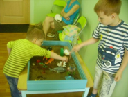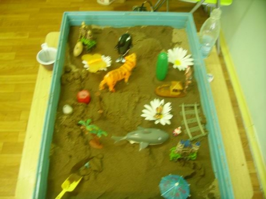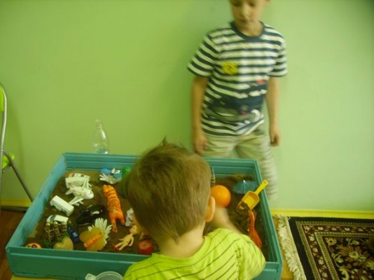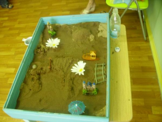 В вашем распоряжении будут две песочницы (с сухим и мокрым песком) и мини игрушки. Краски, карандаши и другие материалы, которые могут пригодиться для творчества. Возможности "песочницы" безграничны.Она будет очень полезна для деток как релаксация, развитие мелкой моторики, фантазии.Дети иногда не могут словами передать то,что их беспокоит песочная терапия поможет не только снять мышечное напряжение,но и отъиграть то,что ребёнок не может рассказать!!!