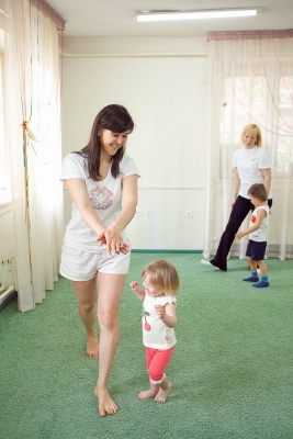Описание: использование песен и стишков вместе с множеством движений и растягиваний позволяет этому классу упражнений способствовать переходу от младенчества к способности независимого передвижения.