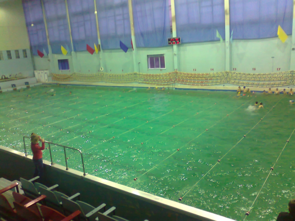 50-метровый бассейн имеет длину 21 метр и 22 дорожки в ширину. Его глубина составляет 1,8-5 м.