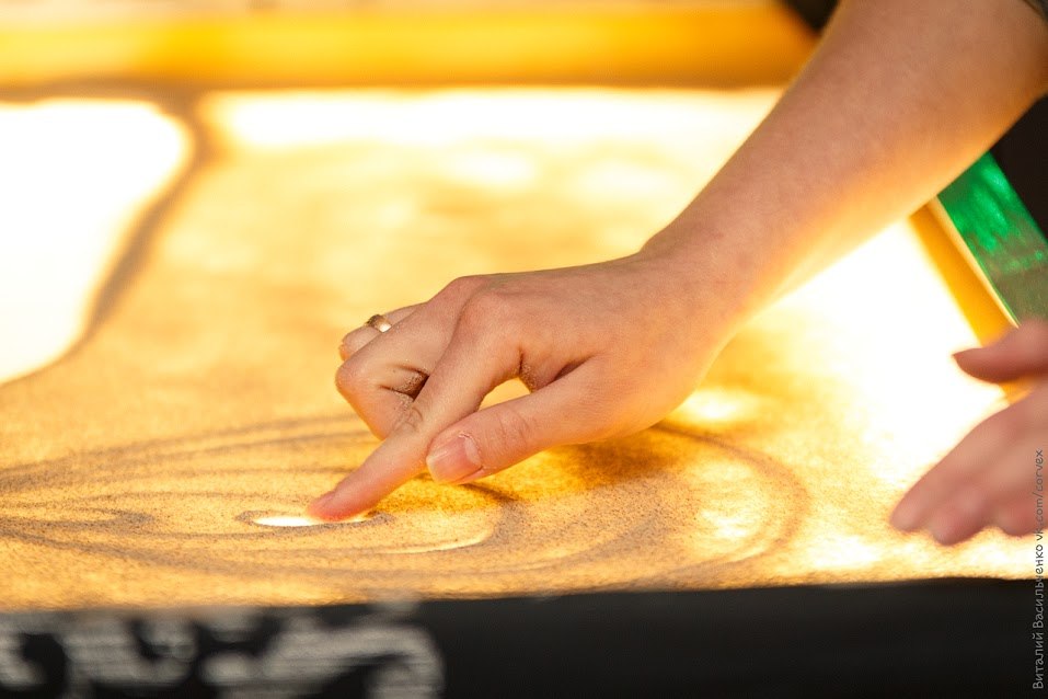 Главная и отличительная особенность нашего арт-кафе,это возможность порисовать песком на специальных световых столах.
