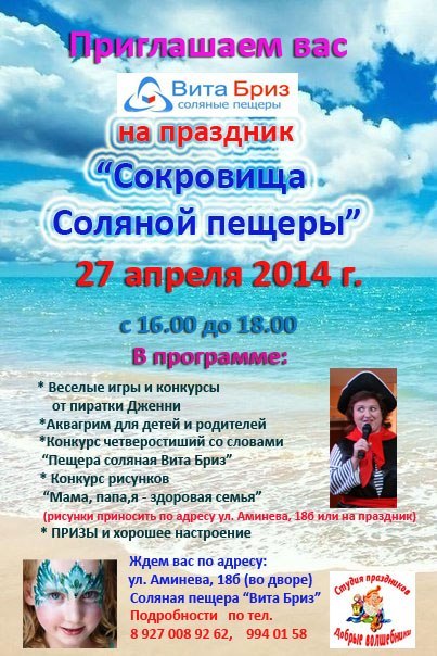 - конкурс четверостиший со словами «Пещера соляная Вита Бриз»