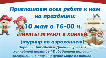 Пиратка Элизабэт и пират Джек ищут себе хоккейные команды! Хочешь к ним? Приходи! Пираты преподадут ребятам уроки храбрости, смекалки, выносливости, и устроят настоящий турнир по аэрохоккею! Победители получают заслуженные призы и целое море позитива!