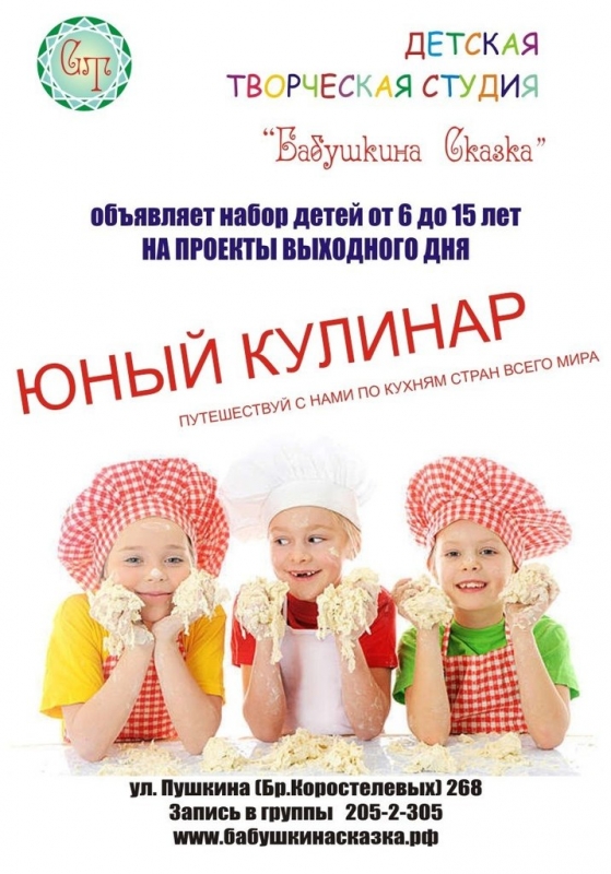 Самарская детская творческая студия «Бабушкина сказка» приглашает ребят от 6 до 15 лет на проект выходного для «Юный кулинар».