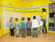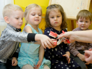 Описание: на занятии детки знакомятся с цифрами, фигурами, телами, буквами, овладевают сенсорными понятиями, танцуют, поют. В занятие включена творческая часть: лепка, рисование, аппликация.