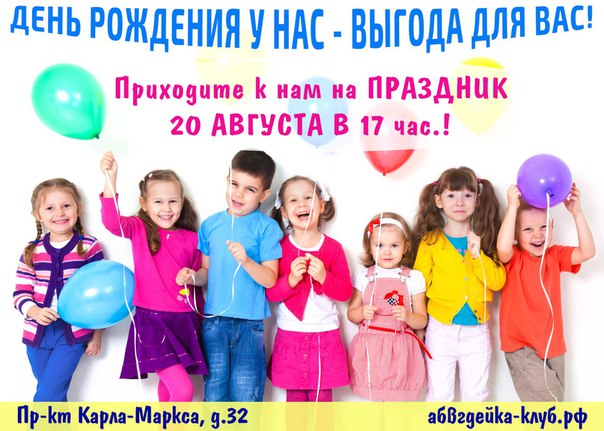 - выгодное предложение от клуба «АБВГДейка» — узнайте, придя на праздник