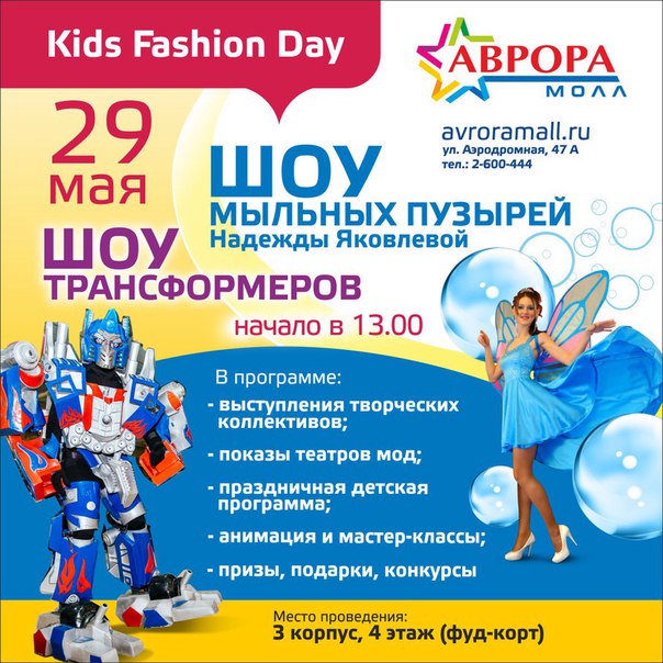 29 мая состоится праздничное мероприятие Kids Fashion Day, приуроченное к Международному дню защиты детей!
