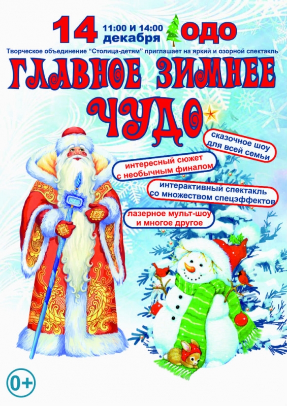 14 декабря 2014 года в ОДО пройдет интерактивный новогодний спектакль «Главное зимнее чудо», рассчитанный на детей всех возрастов.